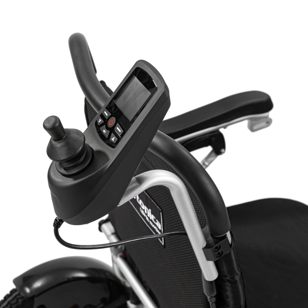 Коляска инвалидная с электроприводом Ortonica Pulse 710 - легкая и прочная с удобным механизмом складывания без съема аккумуляторов. Модель в сложенном виде не превышает размеров дорожного чемодана.